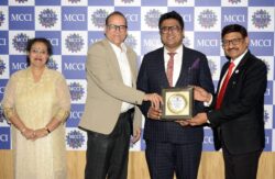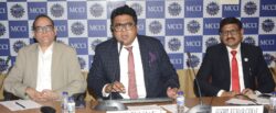 R to L : Sushil Kumar Goyal, Chairman, Council on GST, Indirect & State Taxes, MCCI; CA Ishan Tulsian, FCA, ACS, LLB, Founder, R Tulsian & Co. LLP (Chartered Accountants) and Sanjib Kothari, Treasurer & Chairman, Council on MSMEs, MCCI
